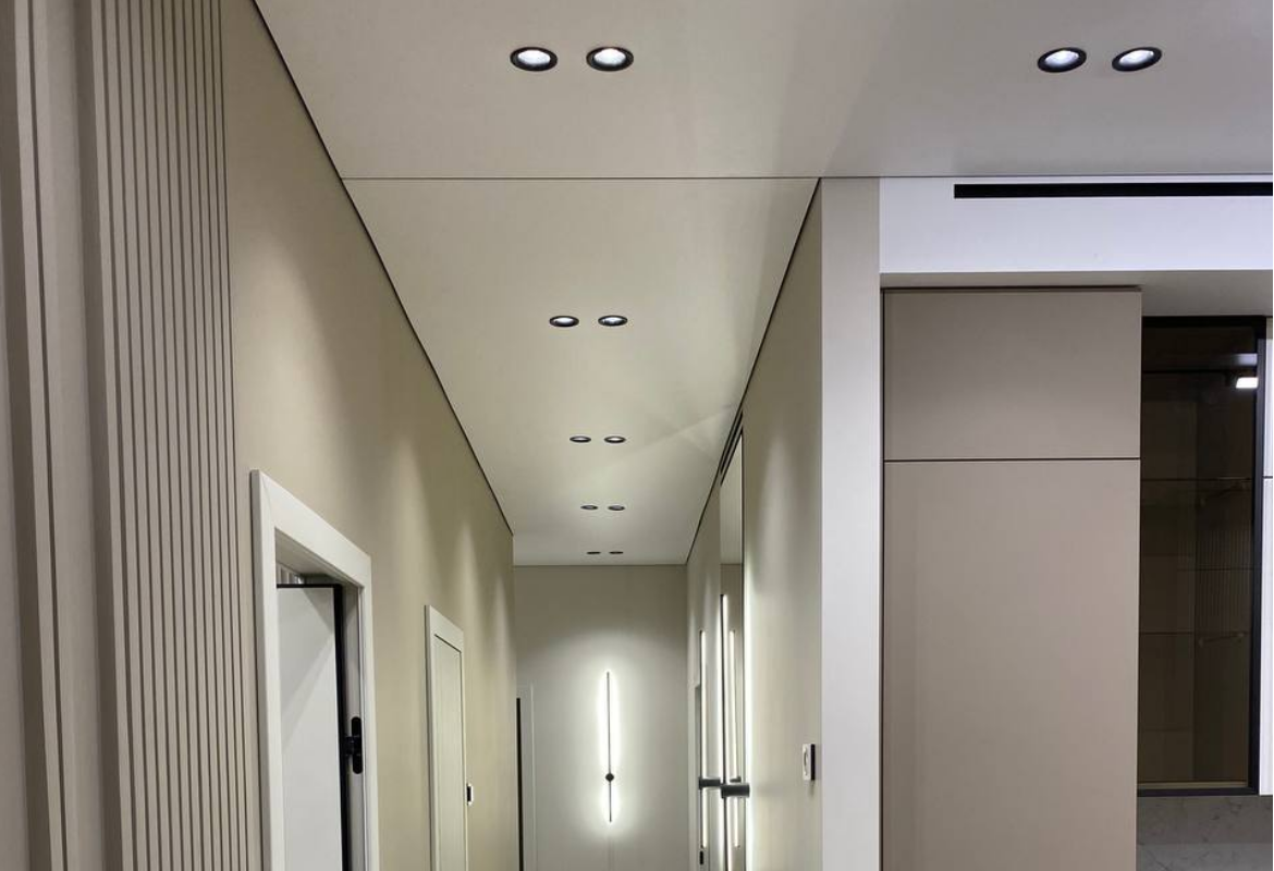 Реализация проектов любой сложности, от классических натяжных потолков, до многоуровневых, дизайнерских, тканевых потолков